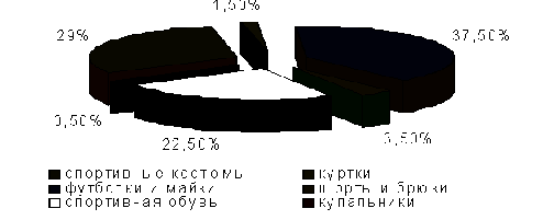составляют 1,5%; продажи шортов и брюк - 3,5%, купальников - 0,5%; продажи