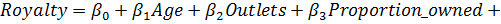 количество магазинов отрицательно влияют на ставку роялти. Согласно нашей