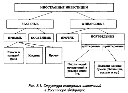 и за рубежом в виде реальных и финансовых инвестиций, где реальные инвестиции