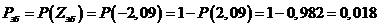 находим вероятность того, что случайная чистая прибыль окажется меньше нулевого