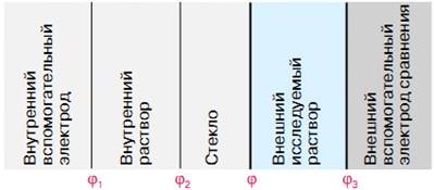 скачков потенциалов j1, j2, j3 и переменного j, зависящего от составов внешнего исследуемого раствора и