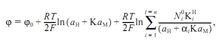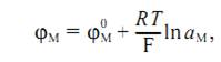 электрода, зависящее лишь от природы электрода и температуры, R - газовая постоянная, F - число Фарадея, Т - температура.