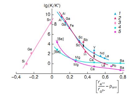 водородной функции стекол в щелочных средах от соотношения размеров ионов