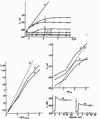 исследуемым раствором электрического потенциала от активности Н+ (аН) в
