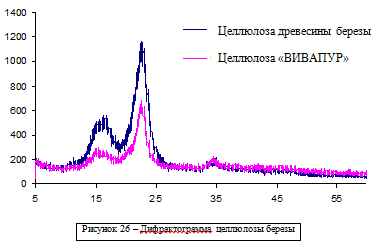 березы и промышленной целлюлозы, показывающие долю кристаллической части в