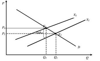 Е2. Цена в этом случае равна Р2, а объем производства - Q2 - тот выпуск,