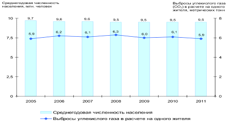 выбросов загрязняющих веществ, парниковых газов в окружающую среду на единицу