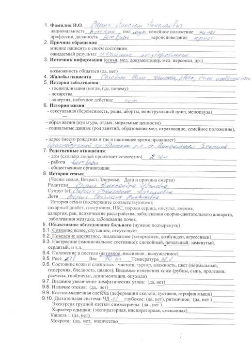 клинического обследования пациента;