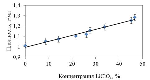 зависимости плотности и вязкости водных растворов перхлората лития в