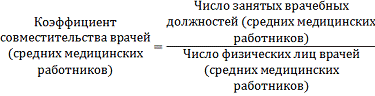 коэффициент совместительства врачей амбулаторного приёма - 1,3 и средних