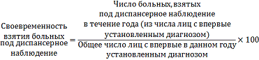 осмотрами в пределах нормы, а показатель своевременности взятия больных под