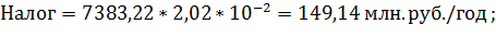 Налог на имущество со стоимости цистерн, млн.руб./год: