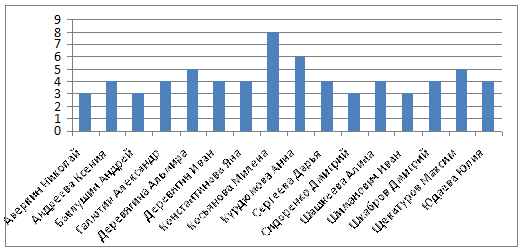 творчески одаренных учащихся, с помощью ранжирования частоты встречаемости