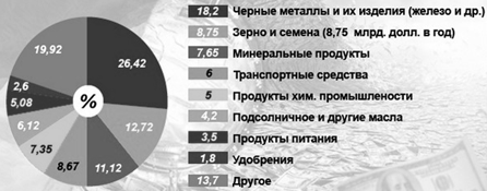 составляет продукция металлургии и сельского хозяйства (зерно и подсолнечное