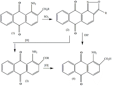 1-аминоантрахинон-2-карбоновую кислоту. При этом сначала идет циклизация . При