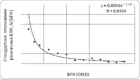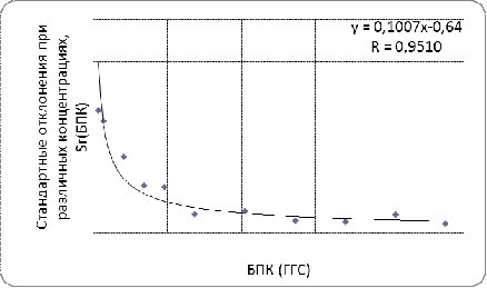 (Sr(БПК)max) = lg(0,0093) - 1,2185×lg(Cн)