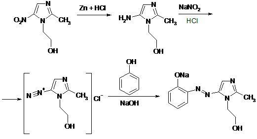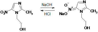 Схемы 2.4, 2.5: в пробирку поместили небольшое количество метронидазола, 2