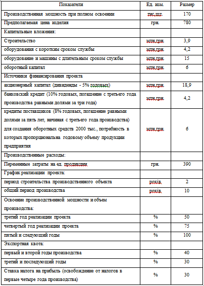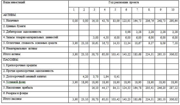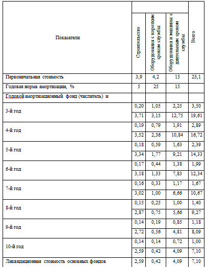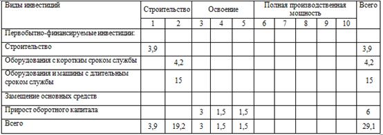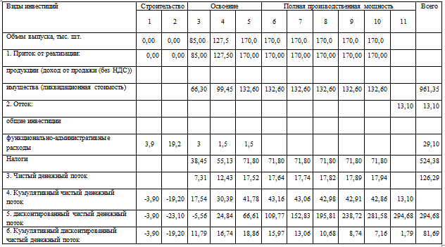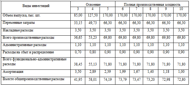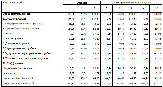 полном освоении производства, выглядит так (для пятого года расчетного периода)