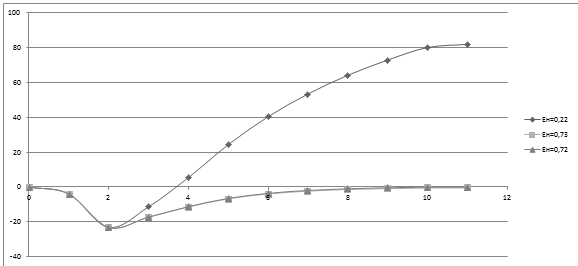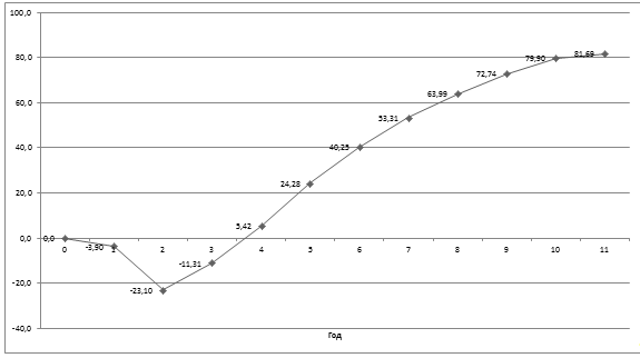 IRR. Для этого составим следующую таблицу и построим финансовые профили проекта