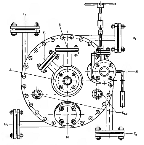 вытеснения. Каталитический реактор устроен так, что технологический газ входит