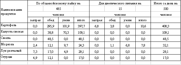 продовольственных пайков, обязательным выполнением кулинарных правил обработки