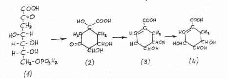 сегептулозо-7-фосфат; 2 - 5-дегидрохинная кислота; 3 - дегидрошикимовая