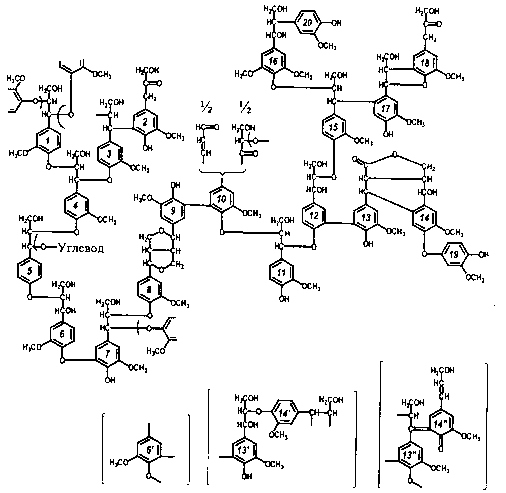 структурные единицы являются производными фенилпропана. Хвойный лигнин состоит