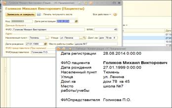 подстановкой актуальной стоимости. Печать титульного листа амбулаторной карты.