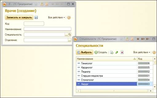 ниже представленного интерфейса (рис.3) На форме «Врачи» вводится фамилия, имя