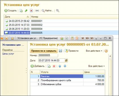 сведений происходит через документ Установка цен услуг (рис.5). Если нужной
