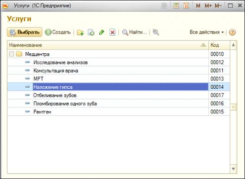 врач, выбрав из соответствующих справочников. При выборе услуги цена подставляется