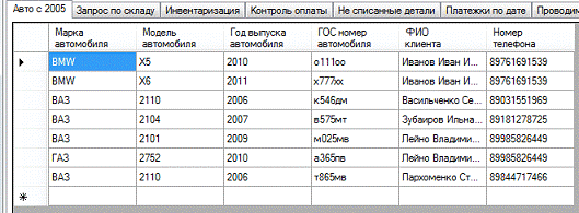 Рисунок 21 - Результат запроса по автомобилям младше 2005 года