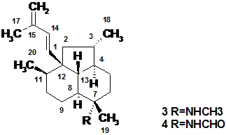 собрана на Багамских островах. Молекулярные структуры соединений 3 и 4