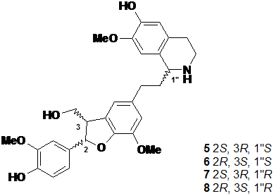 определены Абсолютные конфигурации стереоизомеров 5-8 как 2S,3R,1"S;