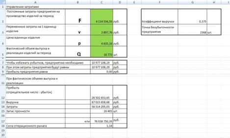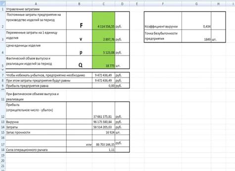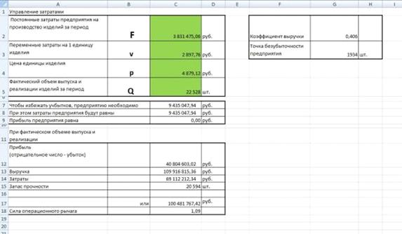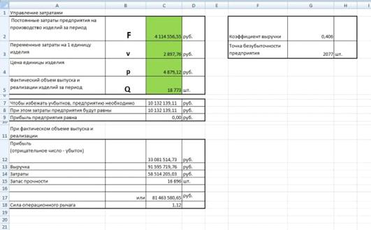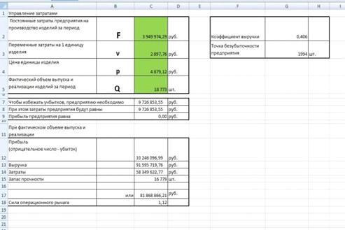 предприятия. Сама точка отражена на графике. Для его построения были рассчитаны