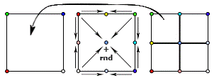 части. Центральная точка получается усреднением высот с 4 угловых точек и