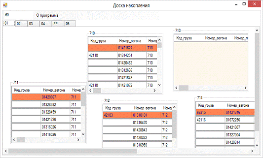 информацию о вагонах, находящихся на данных путях.