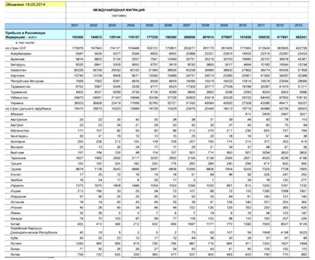 в 2013 году в России составил - 482 241 человек, из них - 422 738 со странами