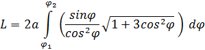 Эта длина выражается эллиптическим интегралом 1-го рода. Так как таблицы