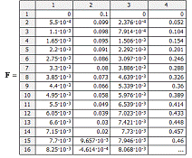 число 1-обозначает первый столбец.Т-матрица времени, размерностью (-1,1).