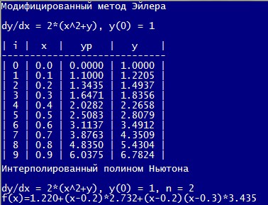 0.2;('Интерполированный полином Ньютона');('');('dy/dx = 2*(x^2+y), y(0) = 1, n