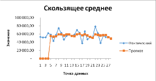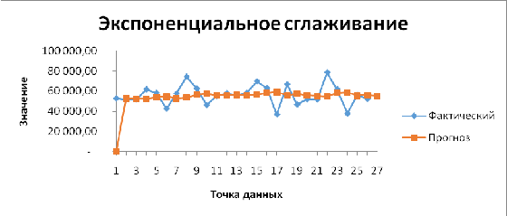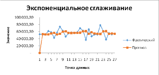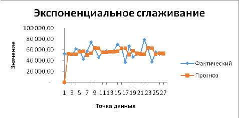 Метод экспоненциального сглаживания показал самые лучшие результаты.