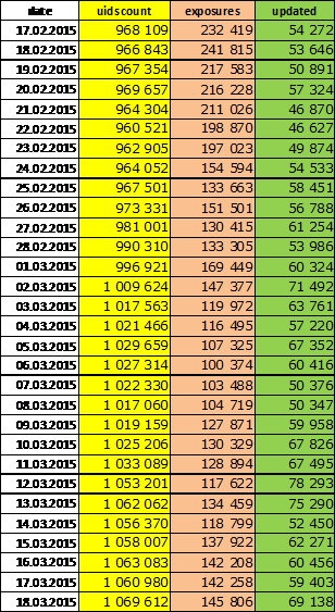 данные о продажах интернет сайта за Февраль-Март 2015 года.