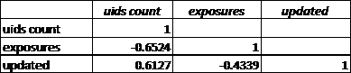 Так же мы видим, что между собой значения exposures и updated связаны не так сильно.