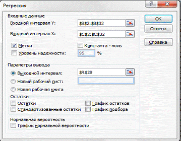 регрессионный анализ с помощью надстройки «Регрессия». Сделать выводы.