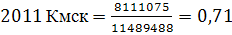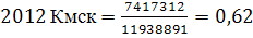 Цена/ Балансовую стоимость ВымпелКом = 537 732 / 612 688=0,88