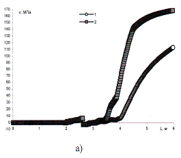 напряжений в слитке при плоскофакельном и круглофакельном вторичном охлаждении.