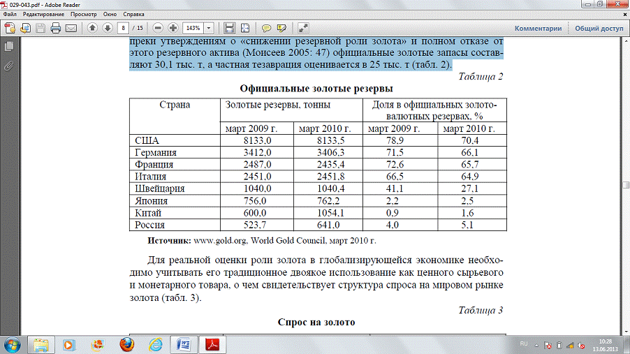 от этого резервного актива (Моисеев 2005: 47) официальные золотые запасы