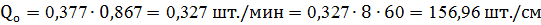 Полученный результат расчета производительности Qо=156,96 шт./см