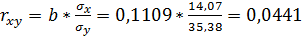 Для оценки силы связи признаков у и х найдем